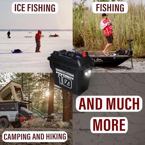 SO MANY USES: The POWERBOX 10 is a mobile charging station for your phone, camera, or personal electronics while playing or working remotely, such as Camping, Construction sites and Emergency use. It’s also a versatile way to power your passions, such as fish finders, ice fishing, small trolling motors, action cameras and much, much more. You can also easily recharge your POWERBOX in as little as 3-5 hours with Dakota Lithium Solar panels (not included). 11 Year Warranty: Dakota Lithium’s batteries were born in the rugged landscape of North Dakota and are backed with friendly U.S. Customer/Technical Support and our 11 year “Best Warranty in the industry”. (Note: chargers, powerbox case, and accessories backed by a 1 year warranty)