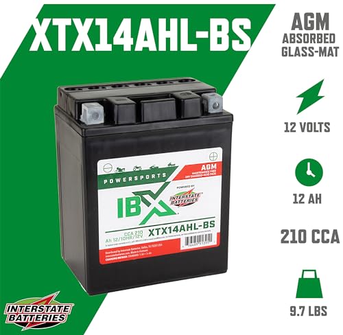 Interstate Batteries YTX14AHL-BS 12V 12Ah Powersports Battery 210CCA AGM Rechargeable Replacement Battery for Motorcycles, Snowmobiles, Jet Skis, Scooters, ATVs (XTX14AHL-BS)