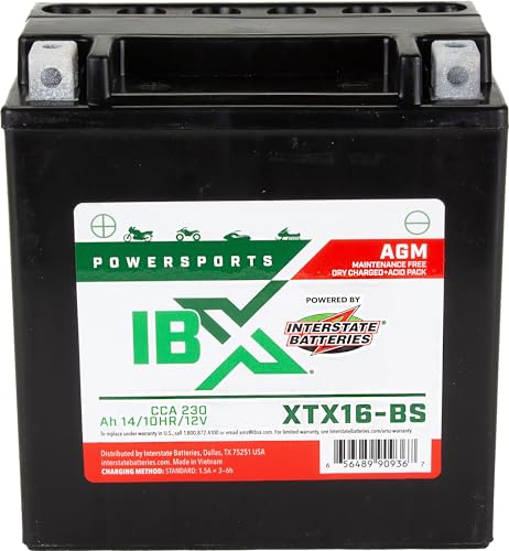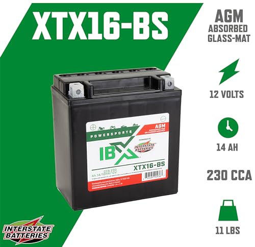 Interstate Batteries YTX16-BS 12V 14Ah Powersports Battery 230CCA AGM Rechargeable Replacement for ATVs, Motorcycles, Scooters (XTX16-BS)