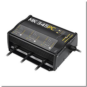 The Minn Kota MK 345 PC on board charger, is a 3 bank x 15 amps charger where you can select what battery type you have connected (AGM, gel or flooded lead acid) to guarantee a safe, protected charge.