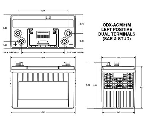 Terminal: Group 31 with brass SAE posts, 3/8 inch positive and 5/16 inch negative thread SS stud terminals and single external vent