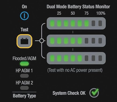 3 Selectable Charge Profiles:Standard Flooded/AGM batteries,HP AGM1 for pure lead AGM batteries like OPTIMA Blue Top Marine Batteries,HP AGM 2 for pure lead AGM Batteries like Odyssey Marine Batteries